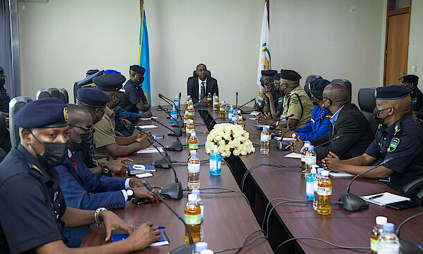 The delegation was received by Mr. Sesonga Benjamin, the Permanent Secretary of the Ministry of Interior who briefed them on the mission of the Ministry, the national security policy and the role of the Ministry of Interior in effective management of affiliated agencies